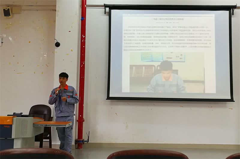 最后,毕业以后直接来到振安,并在振安公司就职已满两年的水电学院2018届供用电技术专业师兄黄富华为各位学弟介绍在振安公司的工作心得,他对即将踏入社会的学弟们总结了自己两年以来在振安公司的工作经验,即最重要的就是在工作中及时进行沟通和学习,那么我们的工作将更加顺畅,各位学弟表示非常感谢。