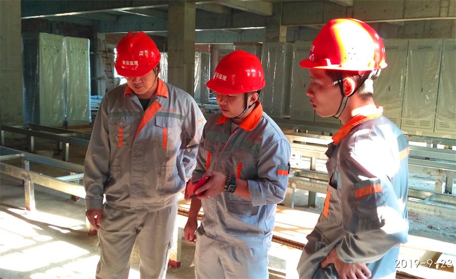在紧张而有序的施工中。项目监理部在总监欧铭的领导下,积极配合业主单位开展月资料检查、周安全检查以及电力质监站的报监工作。有计划的对施工现场进行旁站、巡视和平行检验,在施工单位提交自检合格记录后,第一时间组织相关单位人员进行验收,确保安全和质量的前提下及时转序施工。