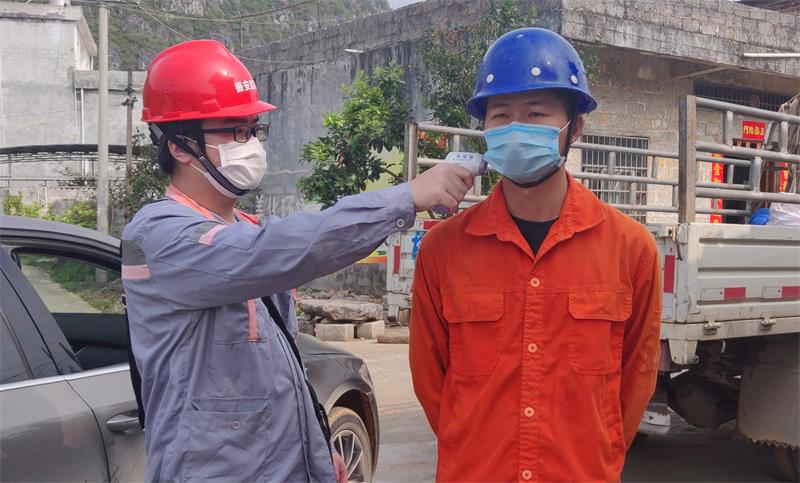 在确认各施工单位进场复工人员非重灾区人员并对居住点进行消毒后方可开展施工,出门前必须佩戴好口罩,开展工作前对人员进行体温测量,并做好登记。