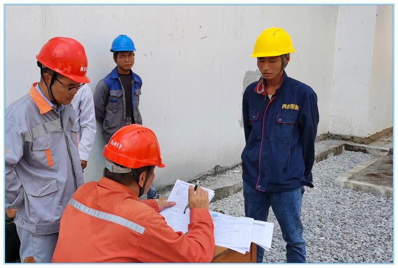 此次“保命”技能实操培训的内容是以理论与实操进行强化训练,目的是规范作业现场安全生产管理与监督管理标准化,确保作业现场安全,杜绝违章行为,有效提高施工人员安全意识和专业技能水平,从而在实际的工作中更好地做到知行合一。在实训场,首先进行了安全注意事项,现场操作规则、操作纪律交代,然后一一规范讲解了“三宝”(戴安全帽、穿工作服、系安全带)“四措”(停电、验电、接地、挂牌装遮拦),随后,参培人员分成了2个小组开始强化训练,在训练过程中,大家相互帮助、相互指点并纠正,更加全面掌握现场操作技能,提高“保命”安全意识和“保命”技能,实操现场参训人员情绪高涨,积极参与训练,尽快天气比较炎热,参训员工们个个汗流浃背,但他们毫不懈怠,坚持认真训练,现场训练氛围浓厚。每位现场作业人员必须弄懂每一个细节、要点,必须时刻牢记保命措施。