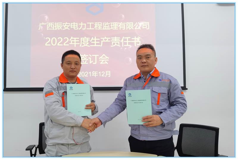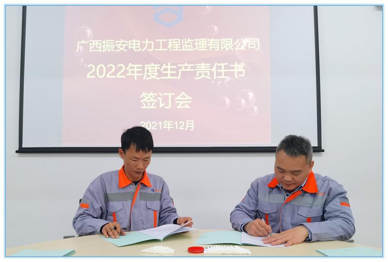 会议的最后,工程部吴主任与各业务区负责人分别依次签订了《2022年度安全生产责任书》。签订责任书的目的旨在将年度安全生产目标分解到业务区、项目部及个人,真正做到‘人人要安全,人人懂安全,人人会安全’的良好氛围,为实现2022年安全目标夯实基层。