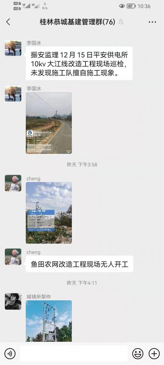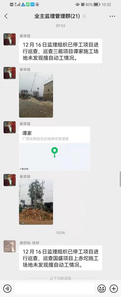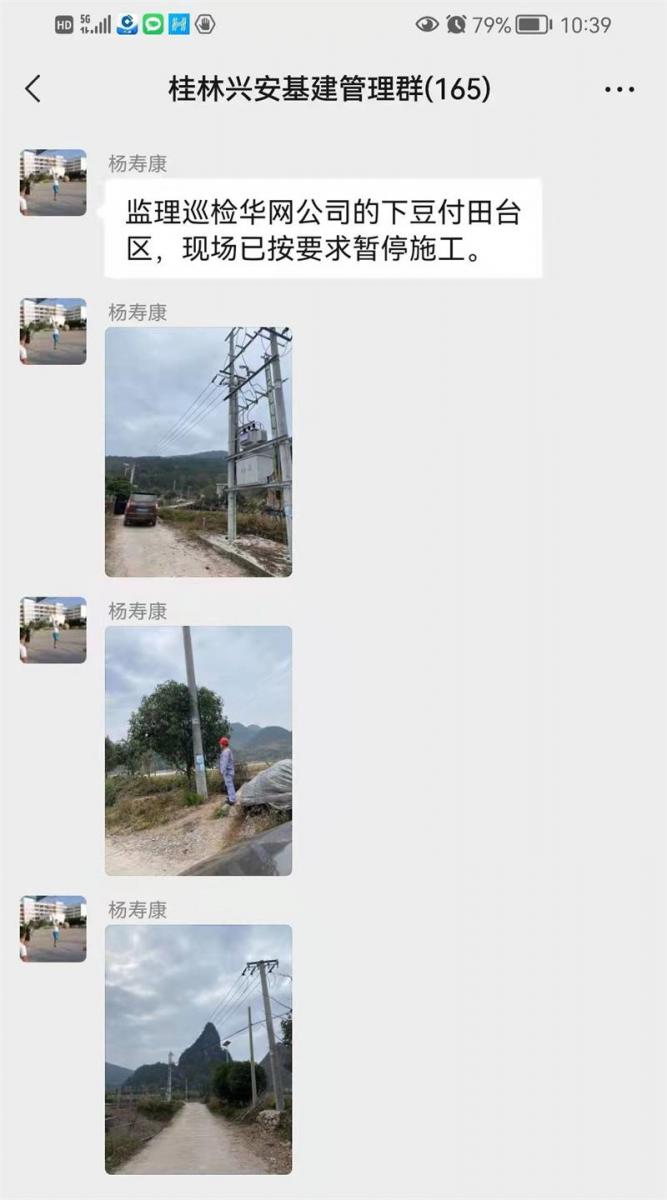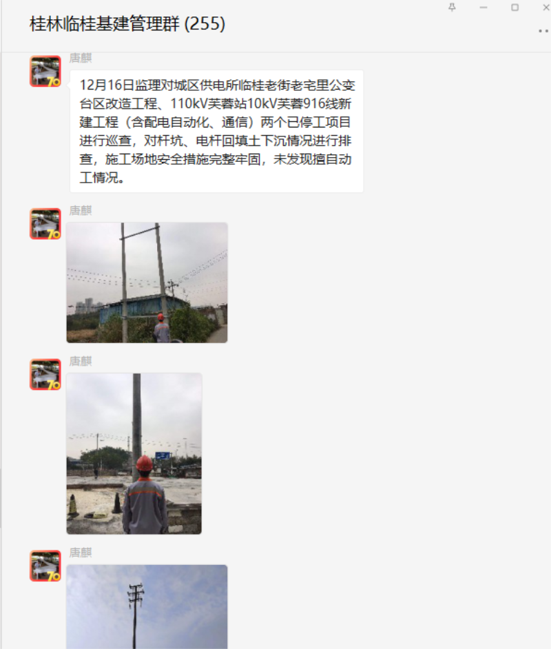 2021年即将结束,为确保安全,自16日开始桂林网区电力工程将全面进入停工状态,结合广西电网公司及桂林局安全管理要求精神,以及本公司近期提出的管理要求,公司桂林业务区各级干部及各项目部负责人立即组织全体人员对在建停工项目杆坑、拉线、新组立电杆进行安全隐患排查,坚持“安全第一预防为主”的思想融入工作全过程,并安排专人每天对在建项目停工期间进行巡视,实时掌握现场情况,并上传至各业主管理群,以确保不出现停工期间,擅自施工现象,严守年底安全大关,为业主提供满意的服务。