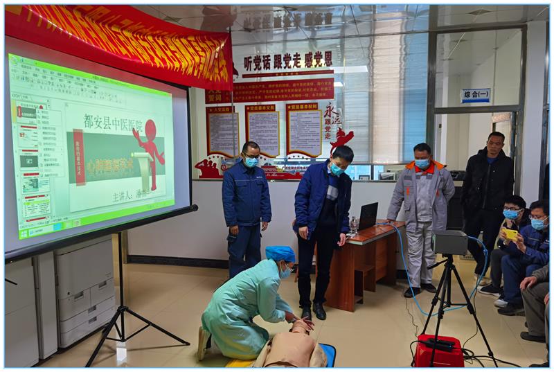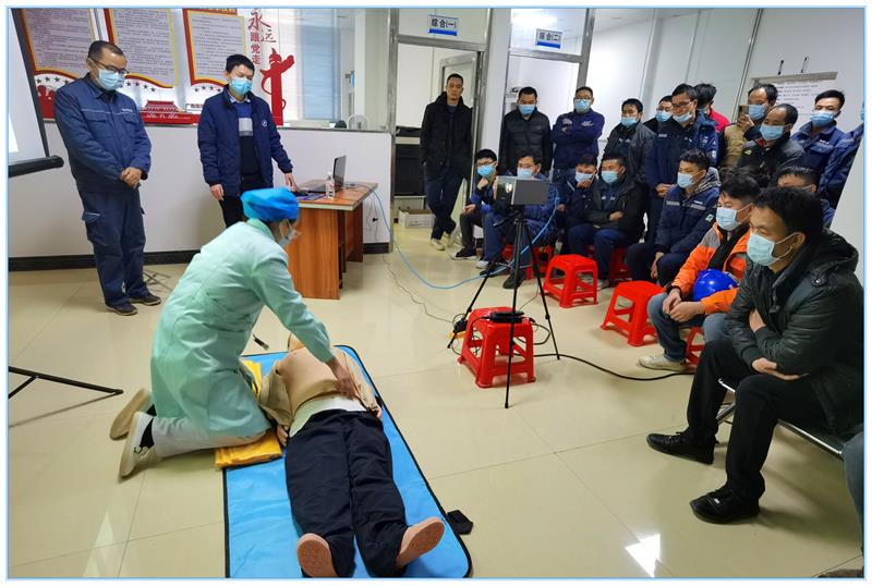 2022年2月18日,都安新电力公司业主项目部及振安监理项目部组织宏湖公司施工人员触电事故应急演练培训。