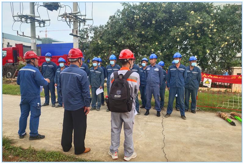 首先由培训师向施工人员讲解了施工现场常见的作业风险及对应的预控措施,现场安全工器具的检查及规范使用要求,停电验电装设接地线的正确操作流程等。即随后开展实操培训,每位施工人员开展不少于十五分钟的实操演练,特种作业人员要求其模拟规范上杆及验电装设接地线流程,一般作业人员要求其口述施工现场常见的作业风险及应采取哪些预控措施。开展实操培训的过程中讲师同时开展考核工作,最终本次参加培训施工人员均通过“保命”技能培训。