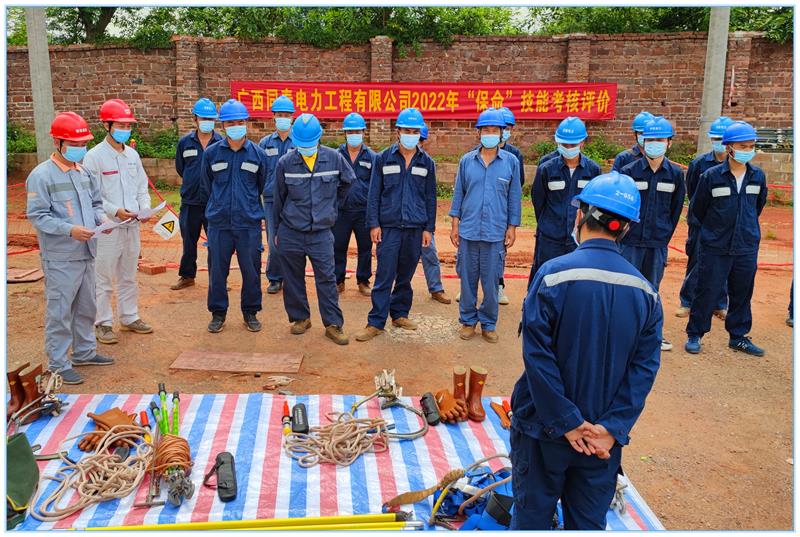 2022年4月28日,江南在线(中国)玉林监理项目部配合业主项目部组织广西同泰电力工程有限公司2022年施工人员开展“保命”技能实操培训。培训实操环节设置核心评分项目(“红线”事项)为“一票否决”项目(即如违反安规等相关规定,会直接导致人身伤害的事项),如实操环节该项目出现错误直接得零分,本次评价直接为不合格。未取得登高证的,禁止开展登高演示,可在地面通过口述方式进行演示,每位施工人员开展不少于十五分钟的实操演练。