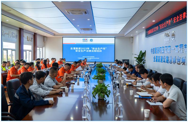 会上全员集中观看了全国安全生产月主题宣传片《筑防》;县应急管理局执法队长结合事故案例详细解读了《新安全生产法处罚条款》;总承包项目经理宣读了《全灌高速2023年安全生产月倡议书》;全灌公司和应急管理局领导对安全月活动提出具体要求,最后各参会人员签字并留影。
