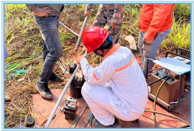 导地线架设前,现场监理人员已严格把控进场的导地线、金具及附件,对现场使用的导地线、金具及附件进行了开箱验收,对材料的型号、数量以及外观进行了检查;导地线接续管及耐张线夹在导线压接前后使用游标卡尺对接续管及耐张线夹进行测量,旁站监督接续管及耐张线夹的压接施工,保证导地线压接合格。