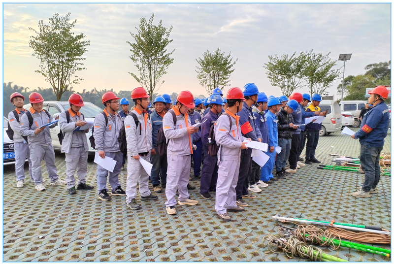 2023年12月08日由我公司负责监理的10kv大巷线线路改造工程停电施工,当日施工分8个小组同时进行施工,根据现场实际情况需要8名监理人员现场旁站监控,而融安监理项目部常驻人员只有3人,未能满足要求当日工作需求,故柳州网区负责人岑创领结合网区内各监理项目部实际工作分别从三江监理项目部、柳城监理项目部、柳州监理项目部抽调人员支援工作,为确保停电当天工作任务顺利完成以及安全、质量可控,积极响应建设单位业主项目部对监理项目部的工作要求部署,为建设单位业主项目部提供优质的监理服务。