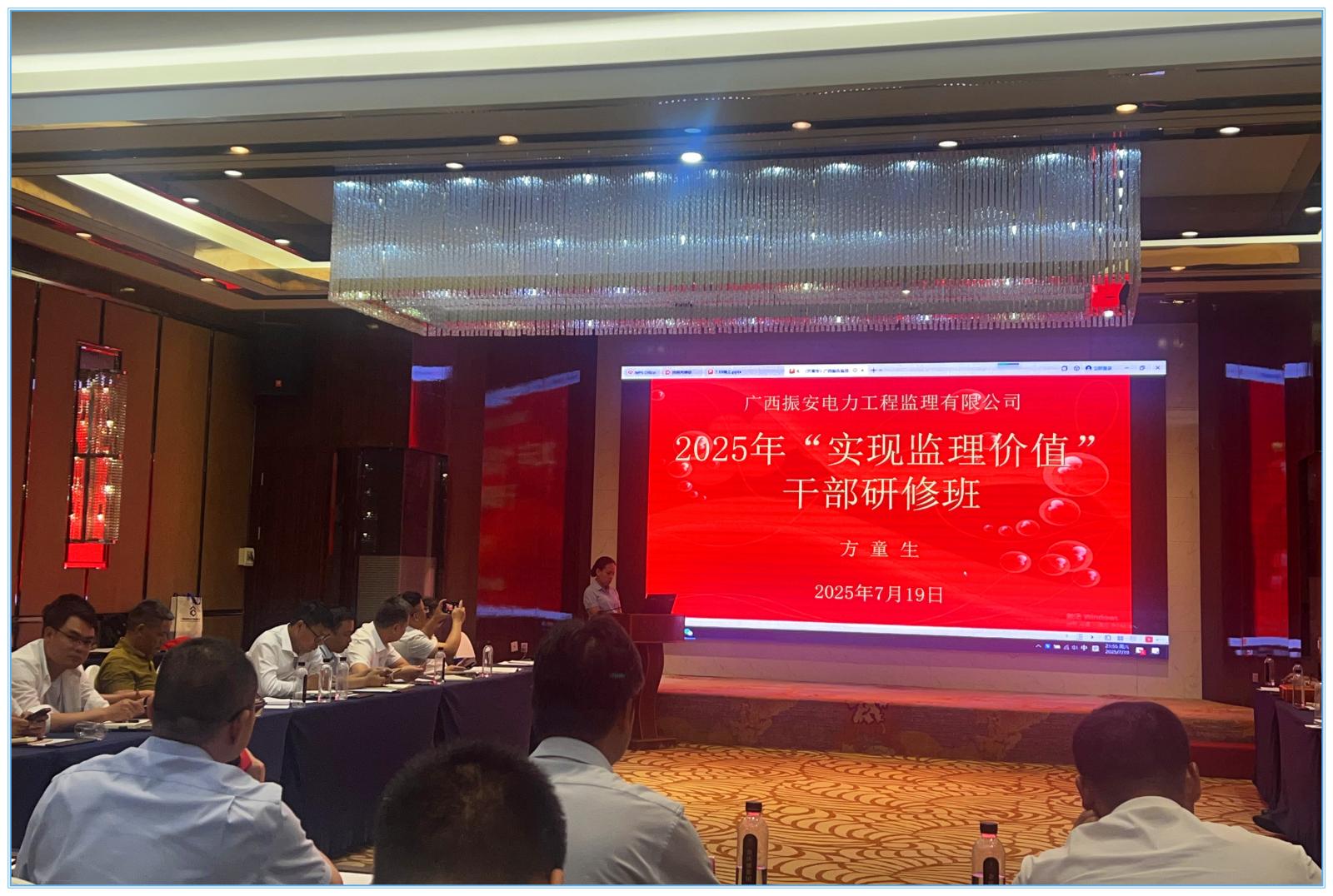 2025年7月19日,公司在金庆盛大酒店隆重召开2025年年中工作会议,并同步举办以“实现监理价值”为主题的干部研修班。会议由公司总经理方童生主持,公司总经办领导、各职能部门、中心、办事处及业务区干部、总监参加会议。