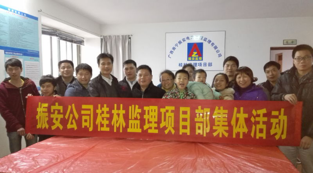 为了能让监理人员家属更好的了解并支持我们监理人员的监理工作,达到快乐工作、团结进步的目的。2015年12月15日开始,桂林监理项目部由片区负责人蒋洪贵开始带头策划组织振安公司桂林监理项目部的集体活动。
