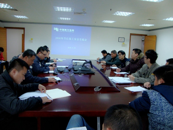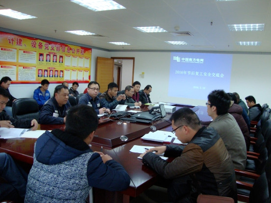 为了贯彻“安全第一,预防为主”的方针,加强电力建设工程施工安全监督管理,保障施工人员的生命安全和身体健康及施工生产的顺利进行。2月25日,在邕宁供电公司十七楼会议室召开由业主项目部主持的2016年春节后基建工程恢复施工安全技术交底会。我公司参加会议的共有两名,分别是邕宁监理网区区域主管韦闯和监理员游国辉,我公司人员在会议中与各参建单位做好相应的安全技术交底工作,并且重点对春节后恢复施工这一关键环节提出具体要求。确保节后各项工作顺利开展。