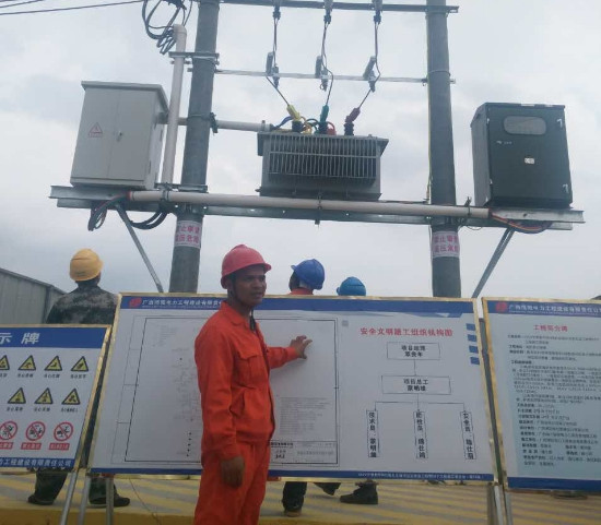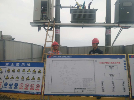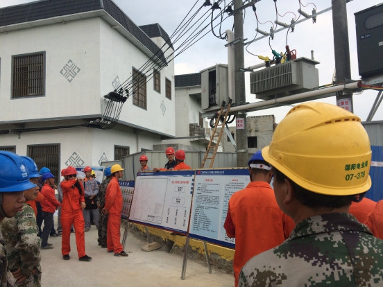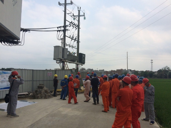 2016年5月9日,继网公司杨董事长检查调研完成之后,宾阳供电公司业主项目部安全质量专责林工、广西南宁振安电力工程监理有限公司宾阳农网工程监理项目部总监代表/区域主管陶树发组织宾阳网区各参建施工单位项目部五大员、项目管理人员、施工队长、安全员参观学习博阳公司16标梨园台区。指导各参建单位如何组织规范化的现场。