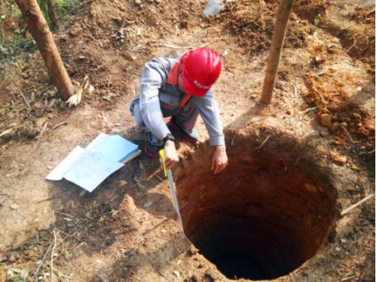 2016年9月5日现场监理员蓝华昌对龙田T接城关-黄冕110kV线路工程N18基坑进行验槽并记录