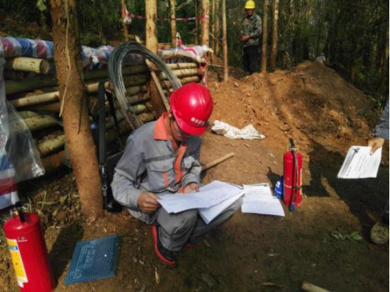 2016年9月10日现场监理员蓝华昌对龙田T接城关-黄冕110kV线路工程N18基础开挖施工现场资料进行检查