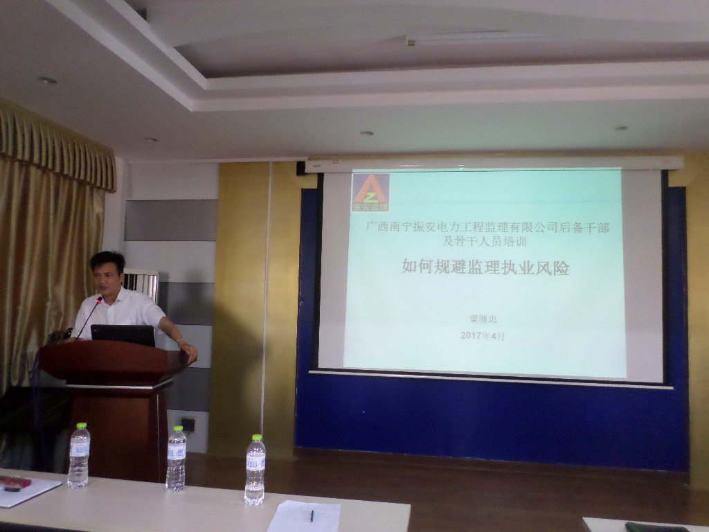会后,总经办3位领导再次给各参会人员授课后备干部及骨干员工培训的内容。授课的内容都是根据公司的业务特点和公司的管理现状,总结和研究了工作中的问题和应对措施,重点解决:了解公司,了解自己;公司对后备干部梯队和骨干员工的具体要求;监理人员的正确工作定位;监理是干什么的;怎样正确规避监理的职业风险;监理工作应该怎么做;监理留痕资料的重要性;基层干部和骨干员工怎样提升管理水平;怎样做好监理的沟通协调工作;培养阳光心态等工作实用知识和方略。