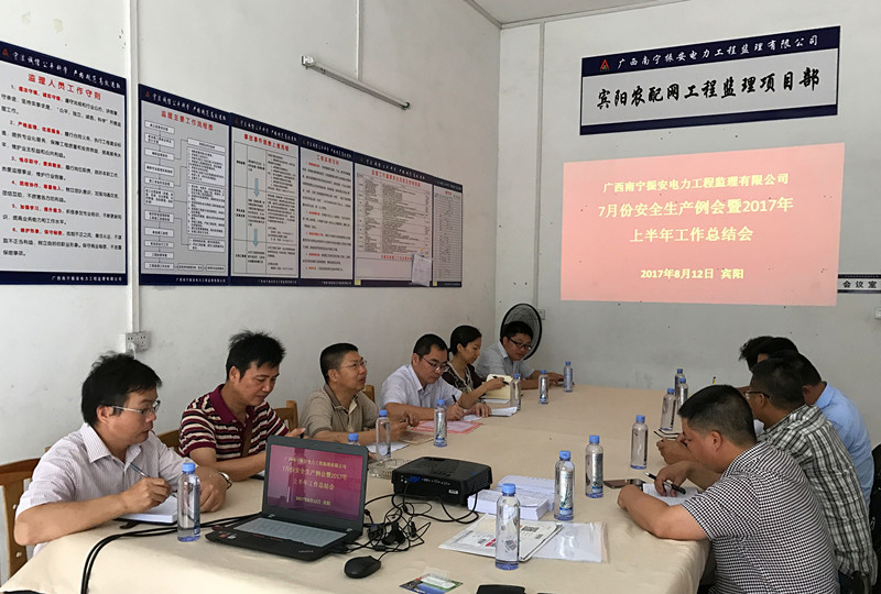 2017年8月12日公司在宾阳农配网监理项目部召开七月份安全生产例会暨 2017 年上半年工作总结会,公司执行董事肖立新、总经理方童生、副总经理兼总工程师梁继忠和各职能部门负责人、各区域主管/区域负责人参加了本次会议。