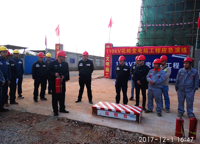 2017年12月1日15时,柳州供电局基建部组织业主项目部、监理单位、施工单位在我公司负责监理的110kV花岭变电站工程现场开展网区消防应急演练。柳州区域监理项目部负责配合基建部组织完成本次消防应急演练,并得到基建部表扬。