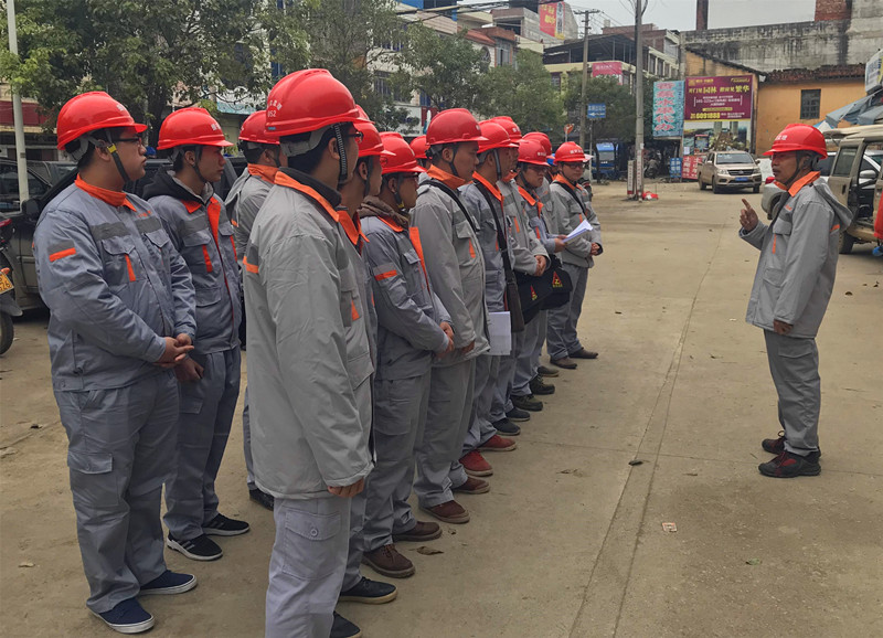 2017年11月22日,武鸣供电公司安排40个台区停电接火及3条10kV线路停电放线、开关安装等共计50个停电作业点施工。武鸣监理项目部为了做好监理现场管控,项目部现有6名监理人员不够安排,向公司申请支援。公司启动内部支援机制,由公司执行董事肖立新和公司总经理方童生带队,共19名监理人员及7辆交通汽车进行支援。