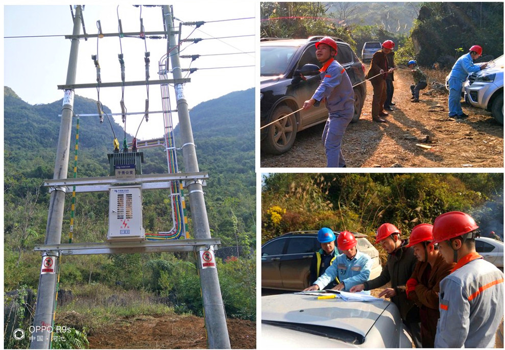 2017年12月19日下午15时35分,随着“咔嚓”一声,最后一相令克合闸到位。我公司监理的大化县北景镇罗福、巴烈、干秀三个配变台区工程投产。三个村屯十四户举村欢腾,男女老少奔走相告。从此以后,夜晚不再黑暗,电视屏幕里的画面不再是梦想,祖祖辈辈流传下来的“无电时代”彻底远去。