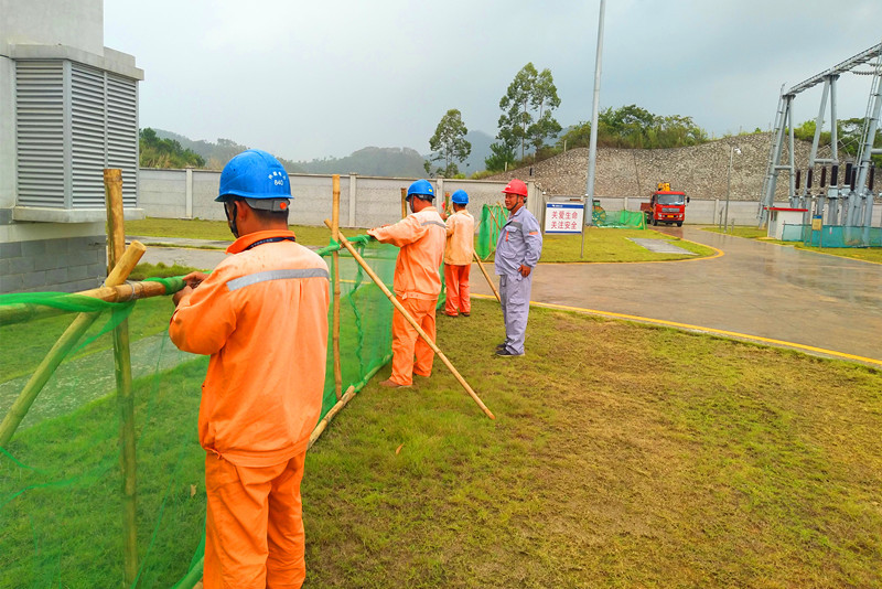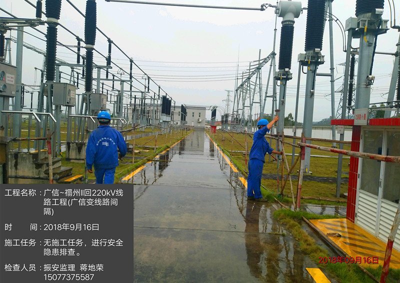 梧州监理项目部监理人员到“广信~禤州II回220kV线路工程(禤州线路间隔)”项目,应业主要求,在台风前督促施工单位暂停施工,安排人员对工地用电线路、临时电箱及配电室排水情况进行专项检查,及时排除隐患。