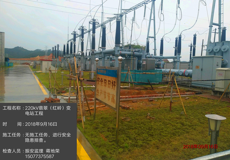 监理人员到“220kV翡翠变电站工程”项目,进行安全隐患排查并督促施工单位及时排除隐患。