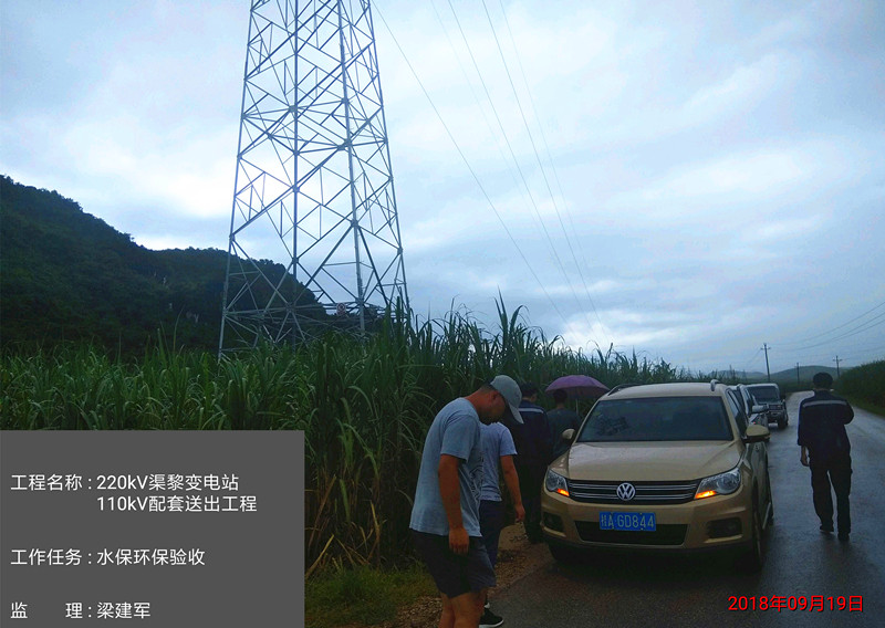 2018年09月19日,虽然天空不作美,上午下起了阵雨,但仍然阻碍不了各参与验收代表按时抵达线路塔位,沿线抽选部分塔位开展水土保持设施自主验收工作,本次验收由广西电网有限责任公司崇左供电局基建部专责马忠义牵头组织,由广西腾新水利工程咨询有限公司对220kV渠黎变电站110kV配套送出工程开展水土保持专项监测。